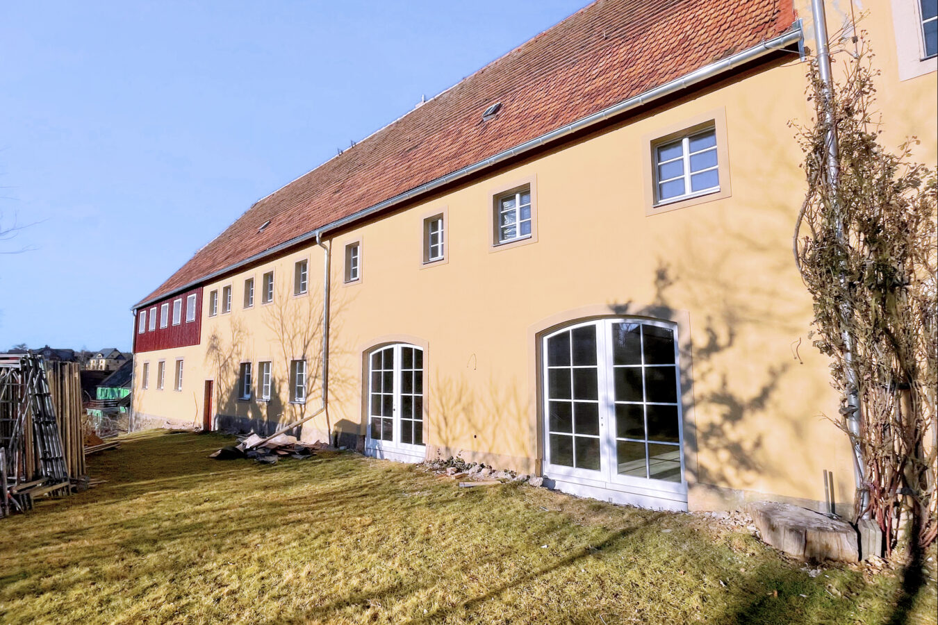 Im rechten Flügel unserer Gutshofanlage entsteht derzeit etwas ganz Besonderes: Das historische Remisenhaus – ein denkmalgeschütztes Wirtschaftsgebäude aus dem 18. Jahrhundert – wird mit viel Liebe zum Detail kernsaniert und hochwertig modernisiert.
