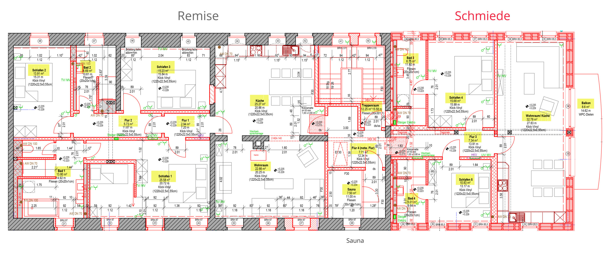 Buchen Sie einfach die beiden Wohnungen „Remise“ und „Schmiede“ zusammen und genießen Sie Ihren Urlaub auf 225 qm mit bis zu 10 Personen plus inklusive ein Kind bis 14 Jahren.