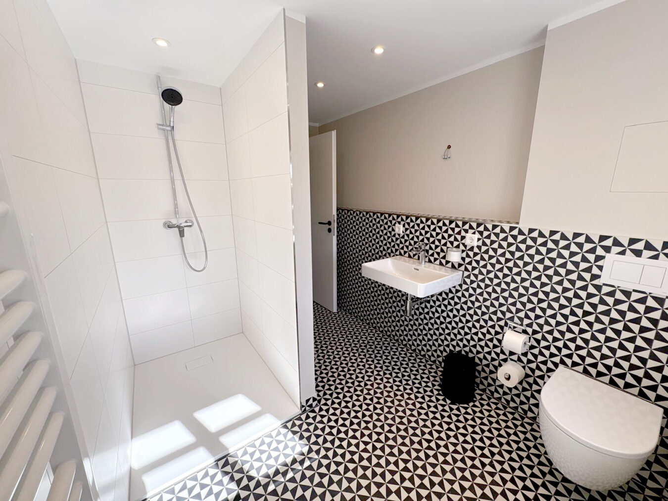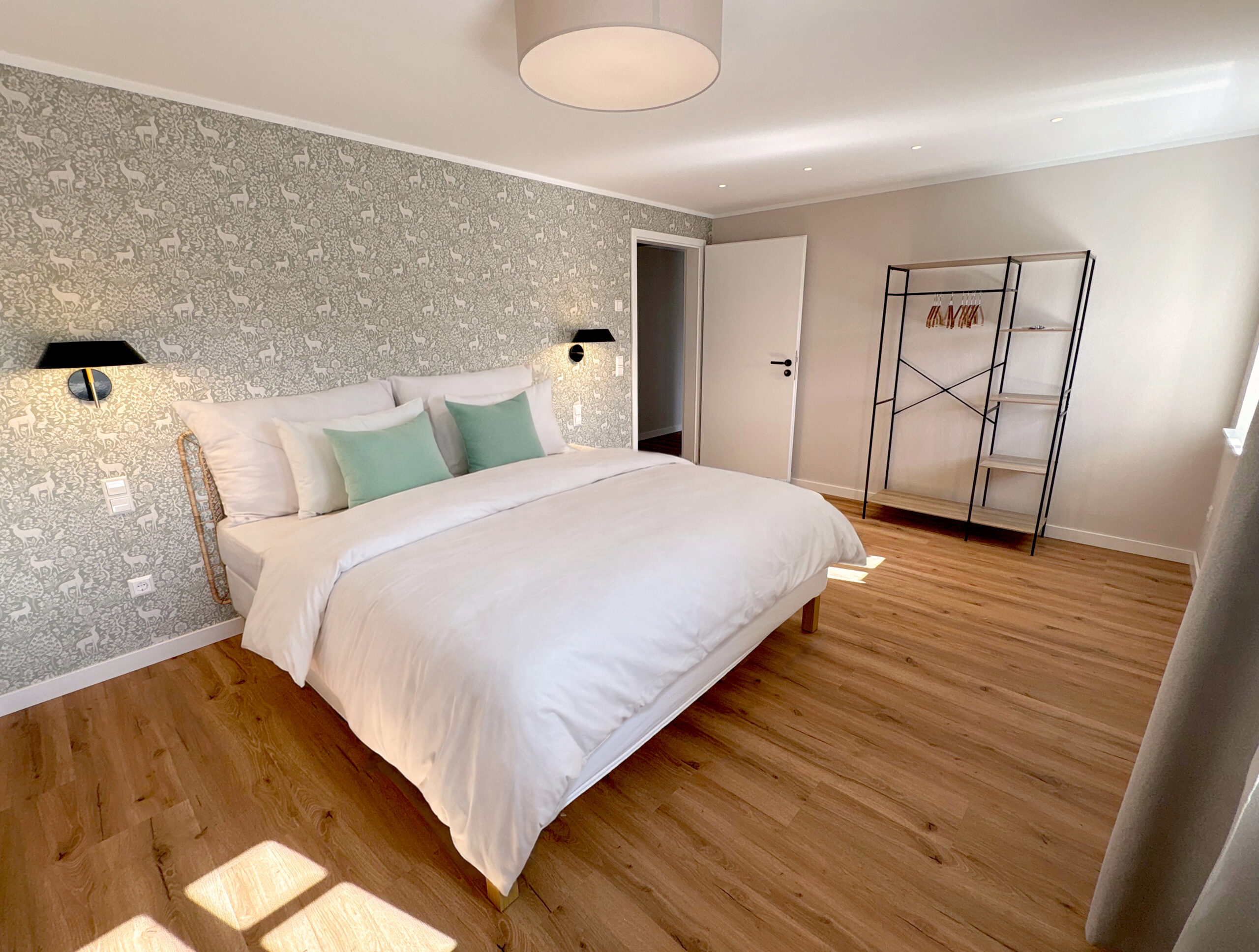 Moderne, lichtdurchflutete 85 qm Ferienwohnung für bis zu 4 Personen – ideal für Paare, Freunde oder Familien. 2 Doppelschlafzimmer, jeweils mit eigenem Duschbad ⋅ Platz für je ein Babybett in jedem Schlafzimmer ⋅ großzügiger Wohn- und Essbereich ⋅ offene Küche mit Esstisch ⋅ großer Balkon (ca. 10 qm) mit Süd-West-Ausrichtung ⋅ Gartennutzung und Grillmöglichkeit ⋅ Hunde willkommen